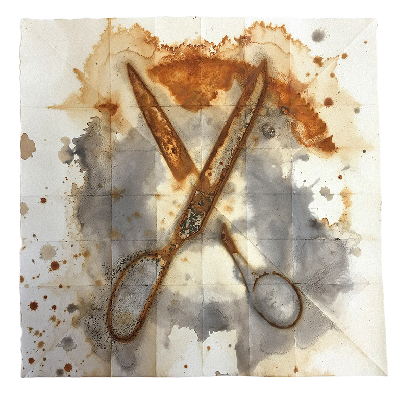 These works on paper come out of several years on a deep dive into color, the origins of pigments and color theory. Oxides, are one of the oldest pigments available and provide a wonderful range of warm tones you see here from soft yellow to purple into blacks. The blue is inspired by indigo a plant based color that has a deep history world wide in dye. This dye was developing in several cultures around the globe simultaneously as if mother earth said we need blue.